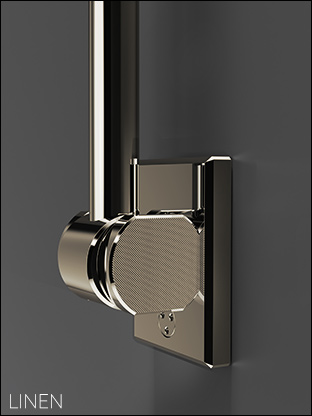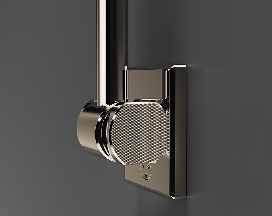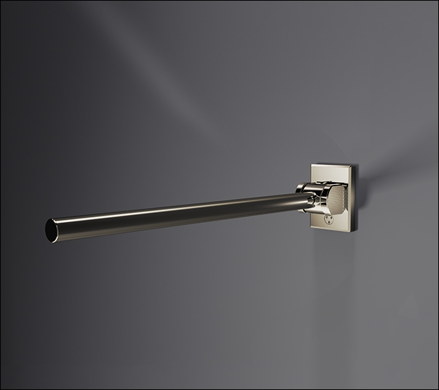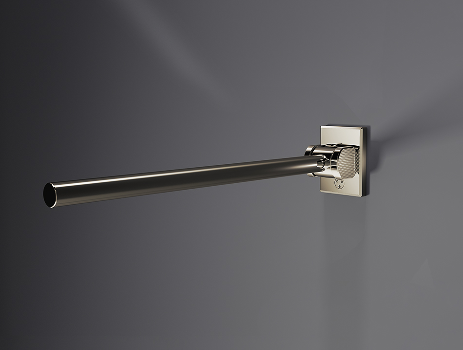 The slim single-bar profile features a choice of two distinctive etched patterns, precision-machined into the surface to create a subtle decorative detail without overwhelming the minimalist form. A soft-close rotary torque hinge allows the rail to fold smoothly and quietly up or down, helping to save space while remaining easy and comfortable to use.