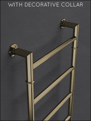 The Art Deco Wall Mounted Brass Heated Towel Rail is suitable for central heating, dual fuel or electric-only installation, making it well suited to both new bathroom projects and renovation work. The well-spaced bars allow towels to hang neatly and dry efficiently, while the structured frame and angular detailing give the design a more architectural feel than a standard ladder rail.