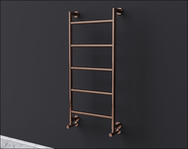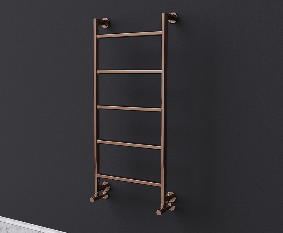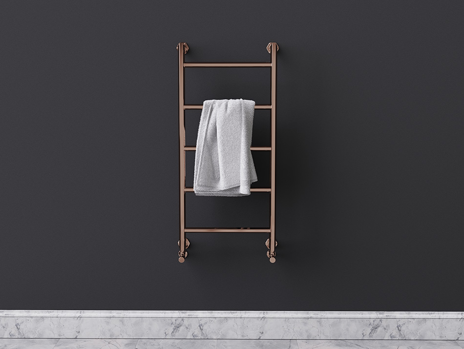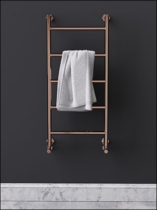 Manufactured from high quality stainless steel, this heated towel rail is built for long-term use in humid bathroom environments. Stainless steel offers excellent corrosion resistance and durability, making it a more dependable choice than chrome-plated mild steel alternatives. The copper finish is applied using PVD for a durable, high quality surface finish, and is available in polished or brushed options to suit different bathroom styles and matching copper brassware.