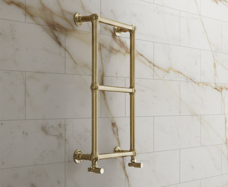 This high quality raw brass heated towel rail is British made using traditional manufacturing methods to ensure high quality of design and manufacture.