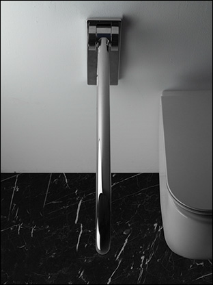 This classically styled wall mounted grab bar is designed for installation next to the toilet to assist with sitting and standing.