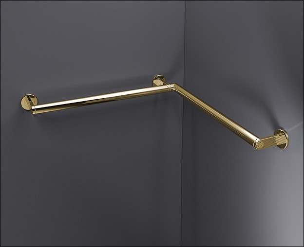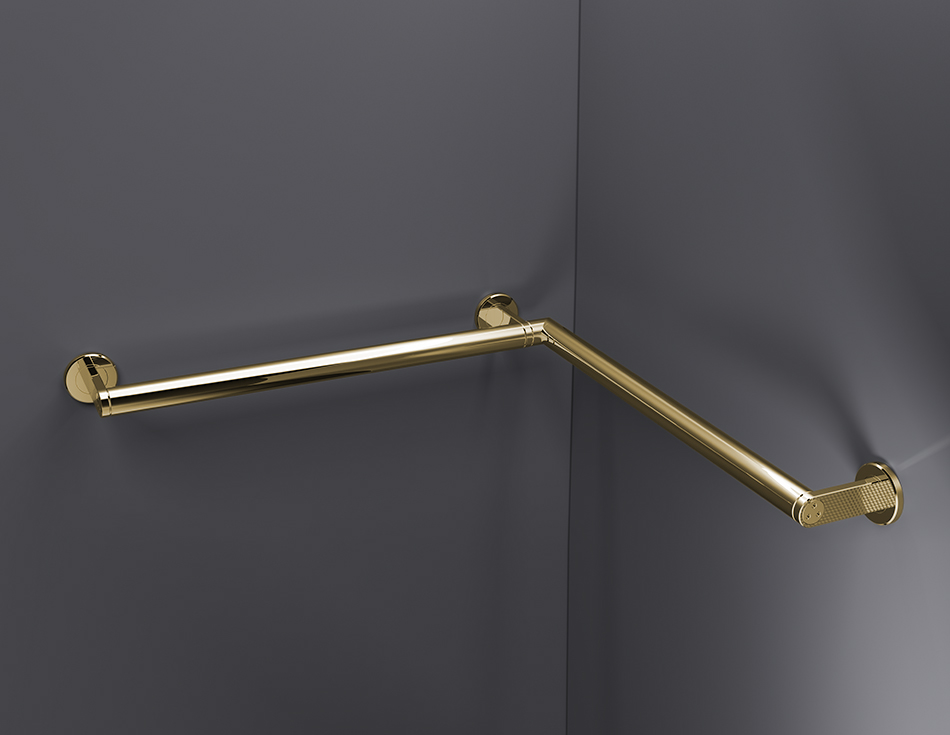 The system is finished in PVD gold, with alternative brushed satin or mirror-polished stainless options available to coordinate with different bathroom palettesideal for stylish, inclusive bathrooms in private homes and luxury settings.