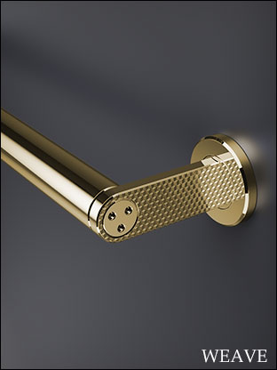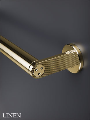 Add refined contemporary style to your accessible bathroom with the Etch designer grab bar support system in a resilient PVD gold finish.