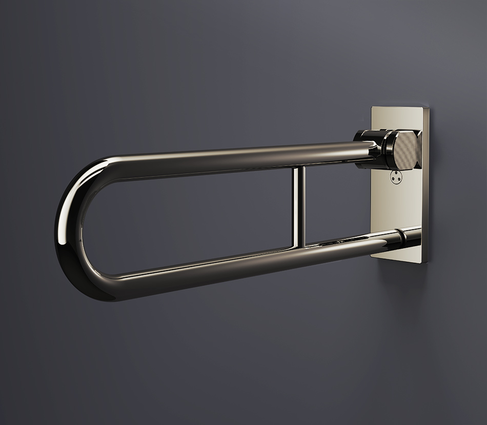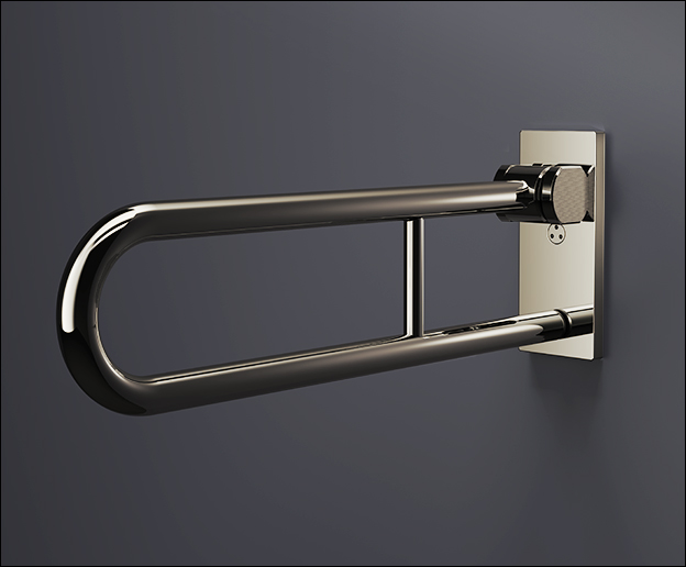 The dual-arm design includes a soft-close, smooth folding hinge that allows the bar to tuck neatly against the wall when not in use, preserving space and maintaining a streamlined appearance.