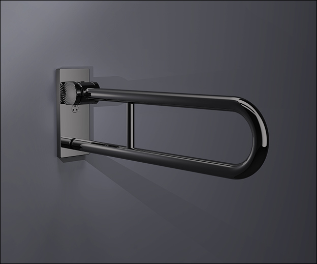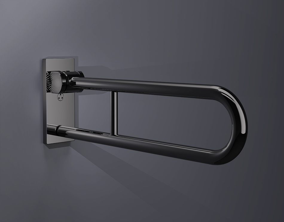 Bring a bold, design-led finish to accessible bathrooms with the Helo hinged double grab bar in PVD black chrome. This wall-mounted folding support rail is made for spaces where reliable assistance is essential, but you dont want the usual clinical look.