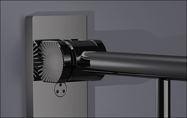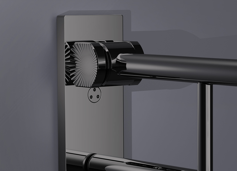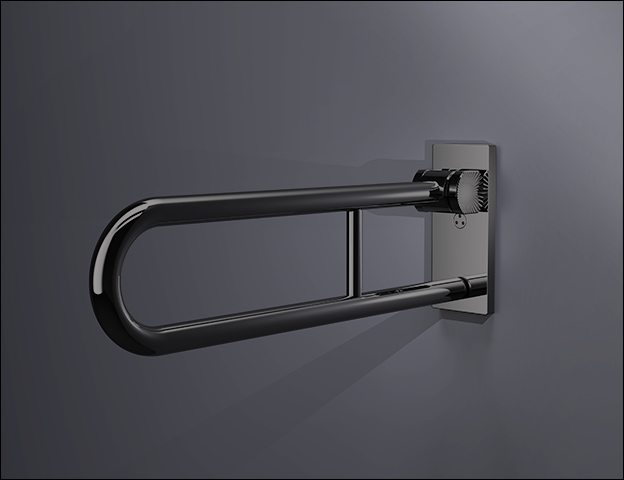 A smooth soft-close mechanism allows the double arms to fold neatly up or down, keeping the space clear and uncluttered when support is not required. For added flexibility in shared or multi-user environments, the grab bar includes a quick-release system so it can be removed easily when not in use, while a discreet cover plate conceals the wall fixings for a tidy, minimal finish.