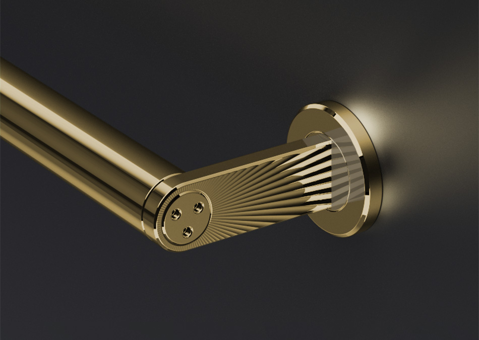 With the unique "sunbeam" design detailing machined into the wall brackets, adding an impressive design styling whilst maintaining full functionality.