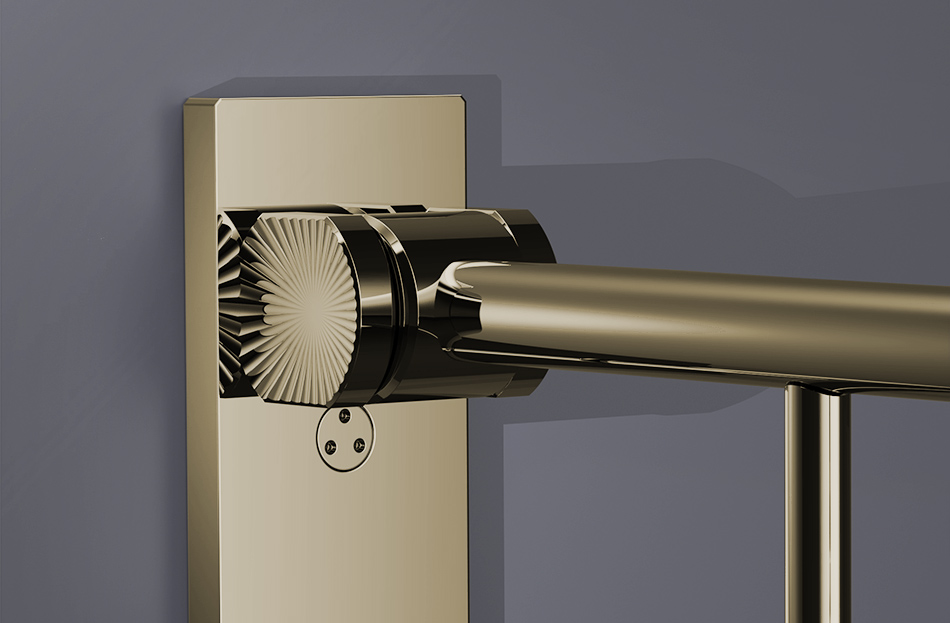 Ideal for luxury hotels, guest bathrooms, care environments and high-end residential projects, the Helo removable double hinged grab bar in PVD brass delivers strong load-bearing support, smooth operation and lasting durability. It is a design-conscious accessibility solution that provides safety and confidence without compromising on visual appeal or build quality.