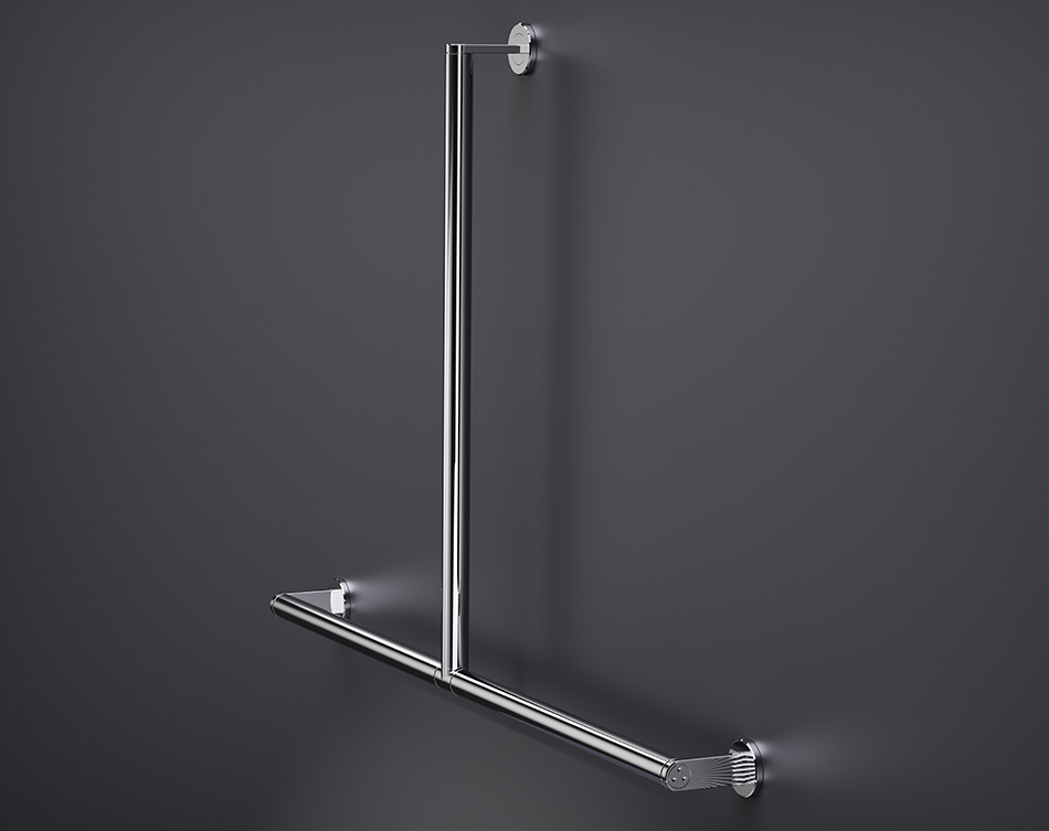 This elegant T-shaped configuration features a vertical support rail integrated with a horizontal grab bar, providing reliable assistance for sitting, standing, and secure movement in wet areas.