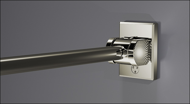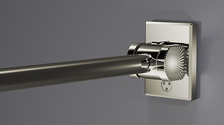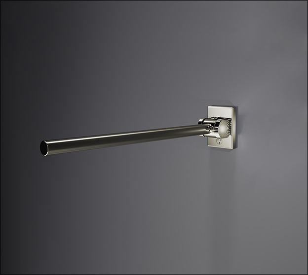 Featuring precision-etched design accents, this single-finger folding grab bar securely attaches when needed and removes easily when not, leaving a discreet cover plate to conceal wall fixings for a clean, elegant finish.
