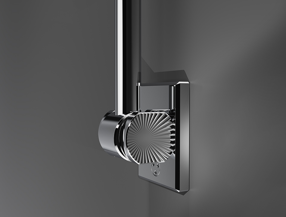 Featuring precision-etched design accents, this single-finger folding grab bar securely attaches when needed and removes easily when not, leaving a discreet cover plate to conceal wall fixings for a clean, elegant finish.
