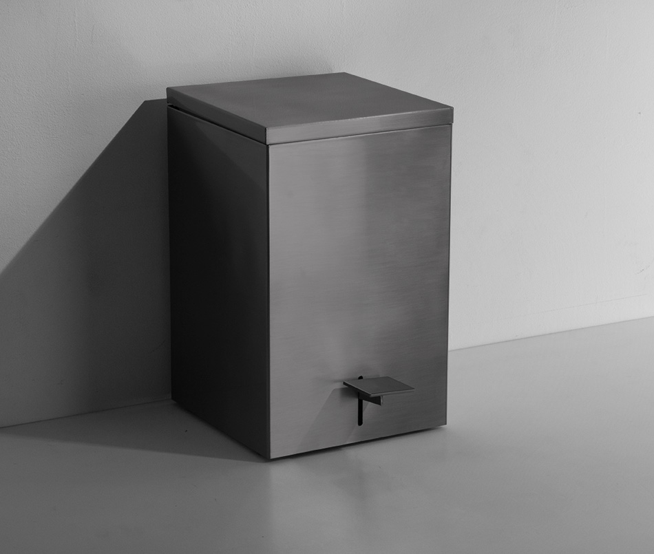 Its simple geometric form gives it a neat architectural look, making it well suited to design-led interiors where the finishing details matter. The pedal-operated lid allows for convenient hands-free use, while the quality construction provides a durable and hard-wearing choice for everyday bathroom use.