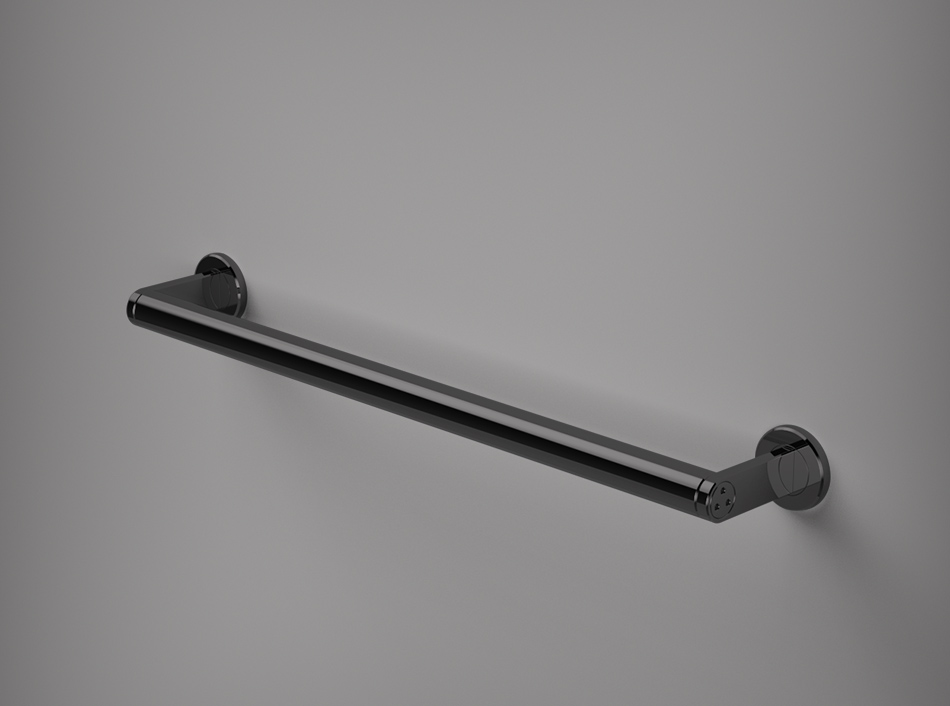 Its streamlined profile can be installed horizontally or vertically to suit the room layout and user needs, and it can also double as a tidy towel support. Positioning can be planned to align with Doc M guidance while keeping the overall scheme crisp and uncluttered.
