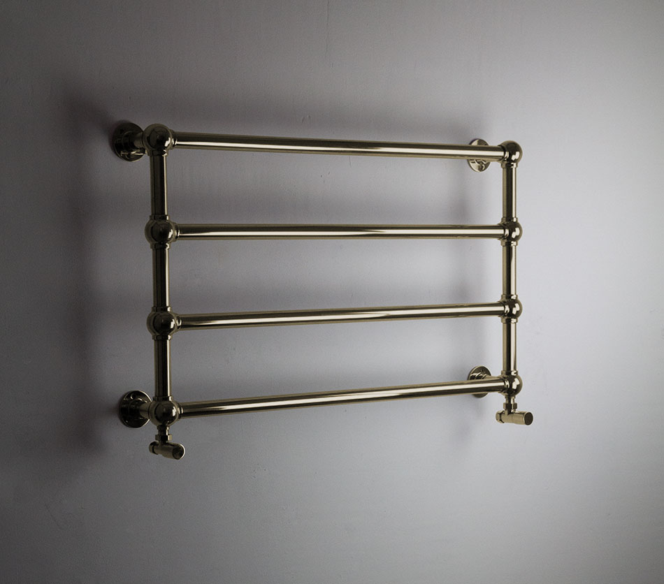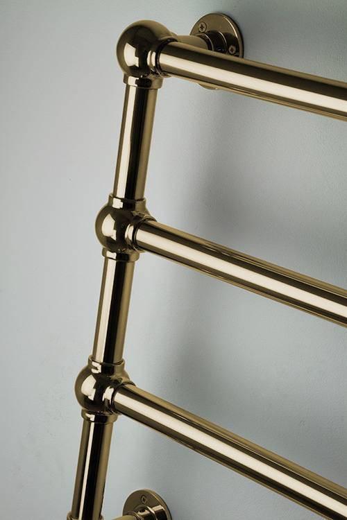 Available in central heating, electric, or dual fuel format, with a choice of polished or brushed natural brass finishes, with matching brass valves, pipe sleeves, and cable covers to complete the look.