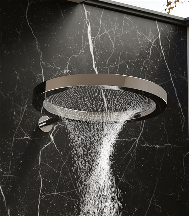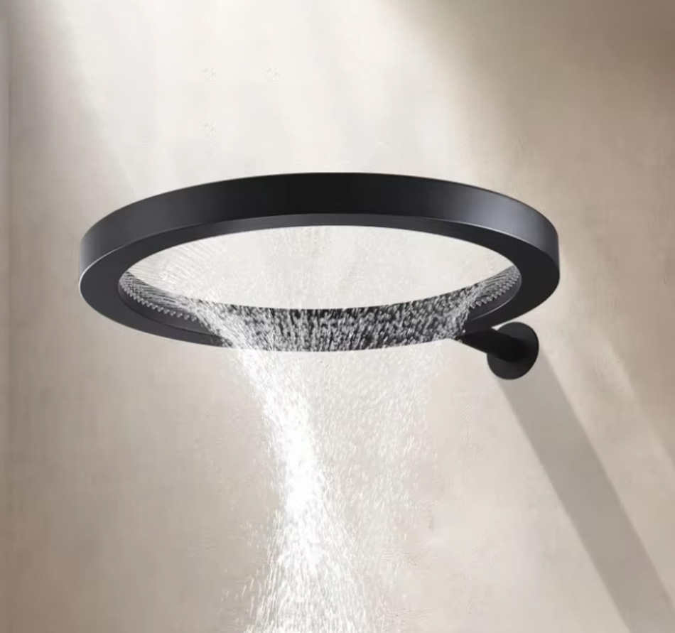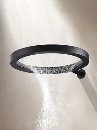 The Orbit is a striking circular ring shower head that delivers a wide, even rainfall from its inner ring of precision nozzles.