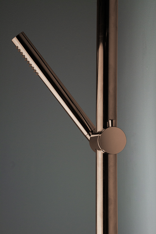 The horizontal bar is available in standard lengths from 600mm to 1200mm (in 100mm steps), with a choice of left- or right-hand layout to suit your space. Bespoke sizes can also be made to order. A matching rose gold wall elbow can be added for concealed plumbing installations.